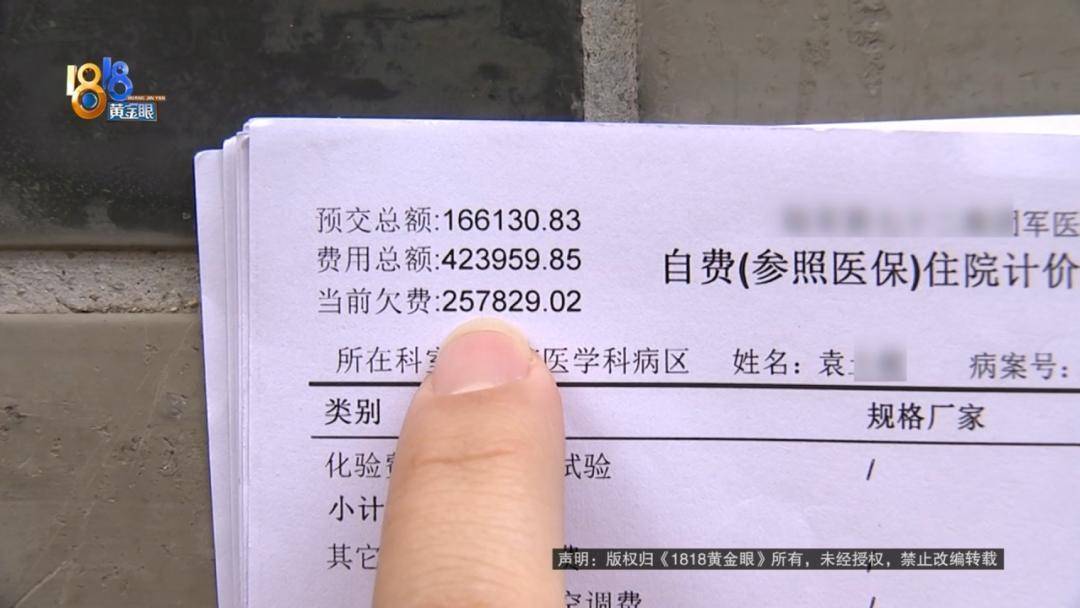 袁女士:在ICU里面是,7月5号住进去,到8月20号的时候出来的,就是住了这么久。然后现在就是说医疗费,现在是大概率啊,就是应该是在45万到46万之间。