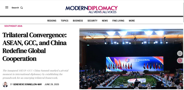 文章认为,首届东盟—中国—海合会峰会的成功举办标志着全球外交的一个高光时刻,为东南亚、阿拉伯海湾地区与中国之间新兴的三方合作奠定了框架基础。三者各自具备强大的经济实力、战略价值以及以相互尊重与务实合作为基础的多边合作愿景。此次峰会不仅意味着三方伙伴关系的进一步巩固,更昭示三方合作的深化拓展。在全球不确定性日益加剧的当下,东盟—中国—海合会合作在国际贸易、经济与地缘政治等方面的影响力愈发凸显。